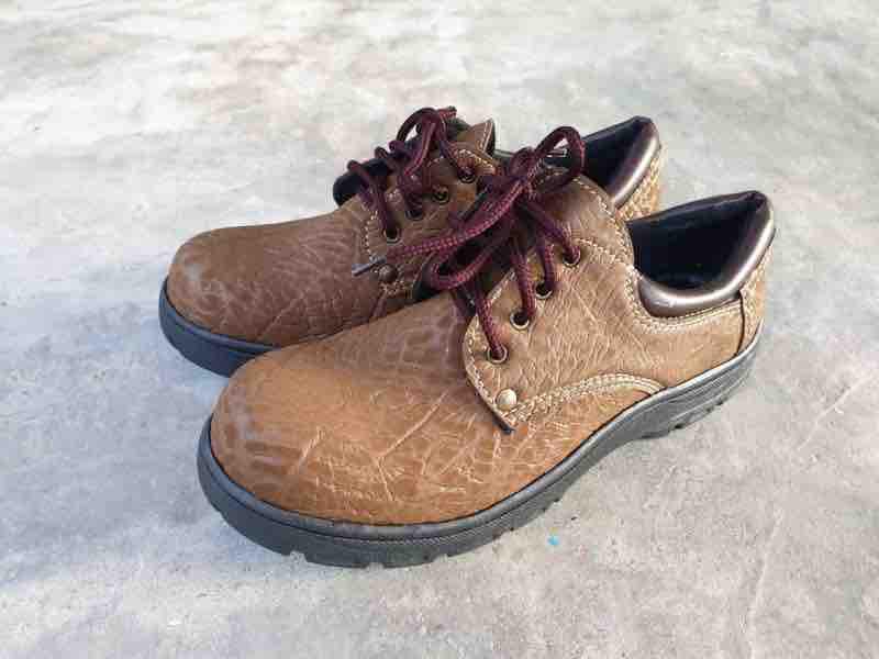 รองเท้าเซฟตี้หัวเหล็ก งานหนังช้าง สีน้ำตาล พื้นเย็บรอบแข็งแรง ราคา 480 บาท ซื้อออนไลน์ได้อย่างมั่นใจทางแอพและเว็บไซด์ มีเก็บเงินปลายทาง จัดส่งถึงมือแน่นอน